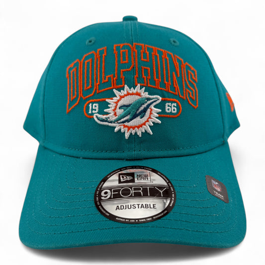 New Era Miami Dolphins NFL Outline Text Logo 9Forty Adjustable Snapback Hat Cap