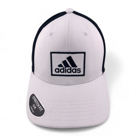 adidas Golf 2 Logo Black/White 3 Stripe Square Logo Stretch Fit Hat Cap Size S/M