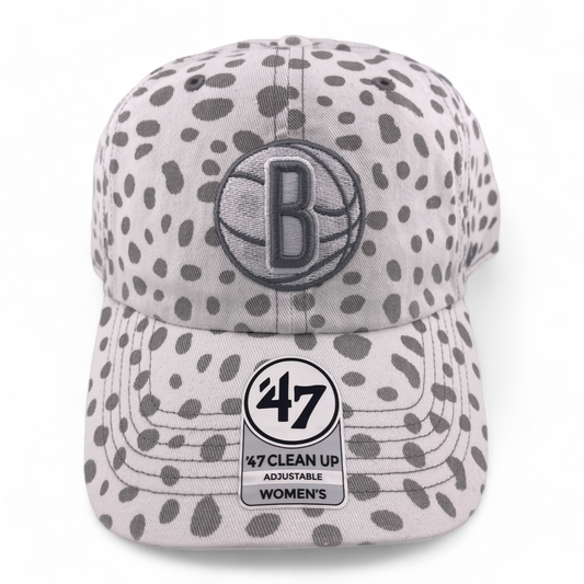 '47 Brand Brooklyn Nets NBA White Cheetah Womens Clean Up Adjustable Dad Hat Cap