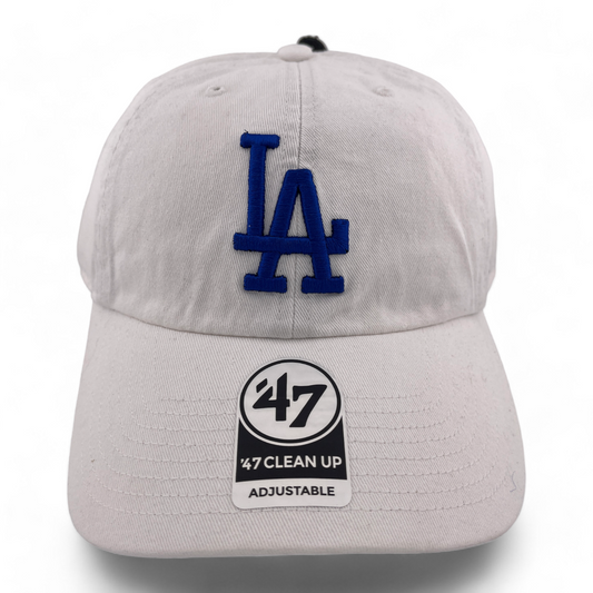 '47 Brand Los Angeles Dodgers MLB White Blue Logo Clean Up Adjustable Dad Hat