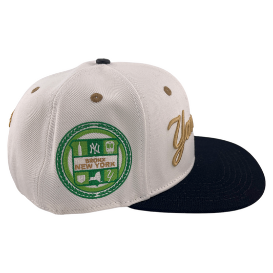 Pro Standard New York Yankees MLB Script Logo Side Patch Ivory/Gold Snapback Hat Cap
