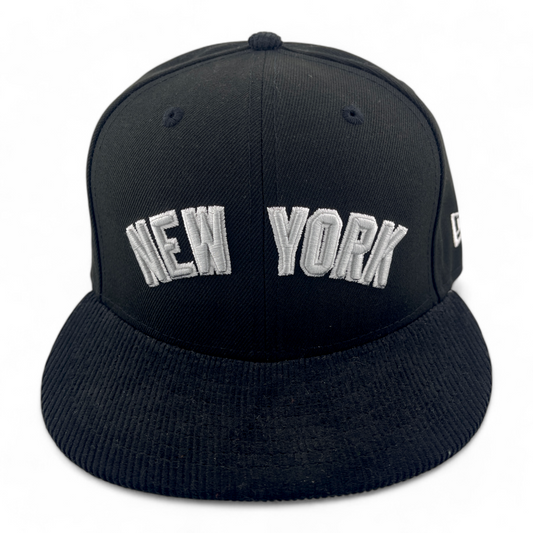 New Era New York Yankees 50th Patch Black Corduroy Visor 59FIFTY Fitted Hat Cap