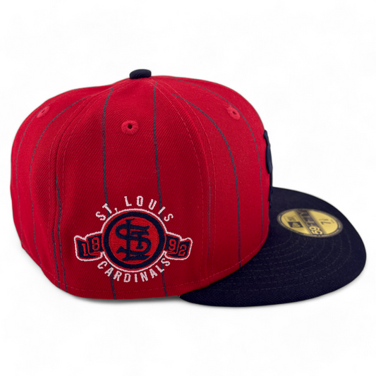 New Era St Louis Cardinals MLB Throwback Pinstripe Bird Cage 59FIFTY Fitted Hat