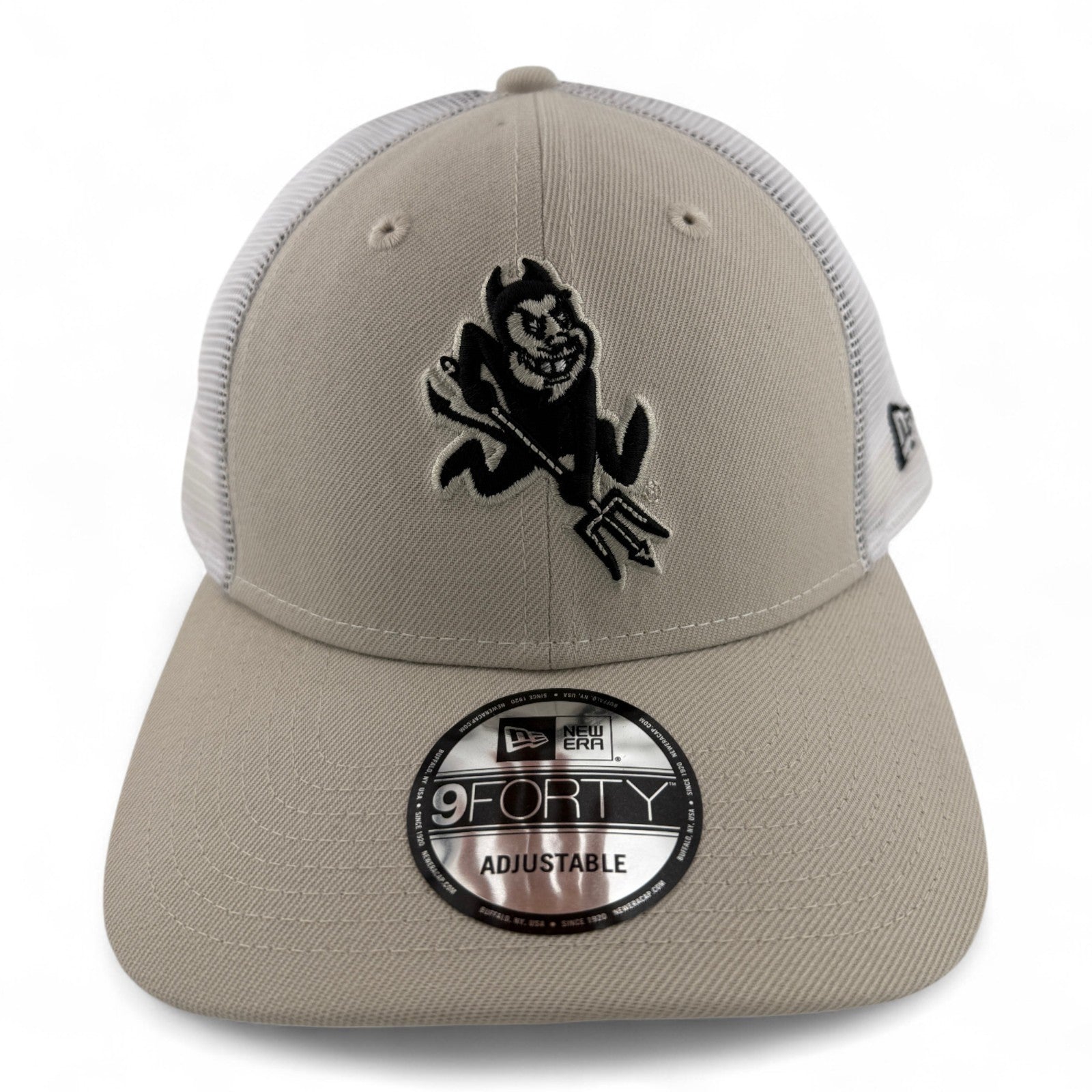New Era Arizona State University Sun Devils NCAA Stone Canvas Trucker 9Forty Snapback Adjustable Hat Cap